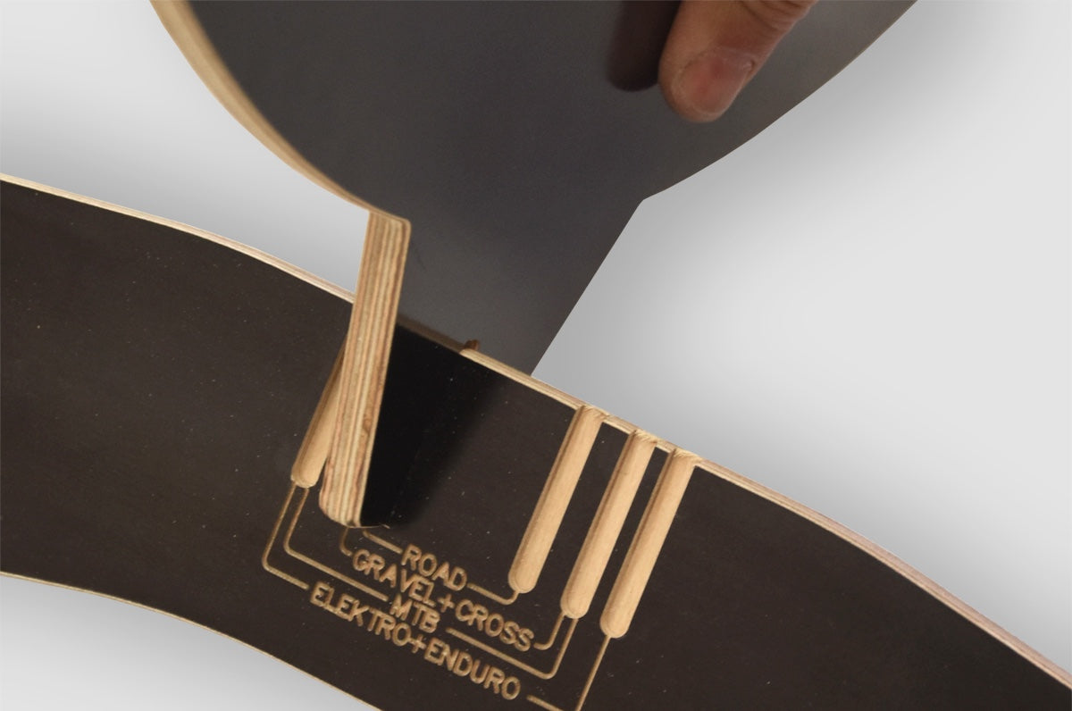 - Made by us: The bike stand is manufactured directly in our workshop from 10 mm thick plywood. If needed, we can also offer custom-made stands. A version with your own logo or text is available upon request.